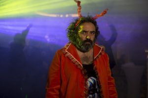 Blacklisted filmmaker Hasan Kasmai (Hassan Majooni) spends his days and nights distracting himself from his troubles by playing tennis, going to costume parties and engaging in other assorted diversions in the raucous new Iranian dark comedy, “Pig” (“Khook”). Photo courtesy of Daricheh Cinema.