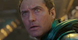 Unsure what to do, Vers turns to her mentor and commander, Yon-Rogg (Jude Law), for advice. He recommends that she work on controlling her emotions (before they control her), especially in light of the magnitude of her ample special powers, such as an ability to blast powerful proton ray bolts from her fists. So, to attain the self-control and peace of mind she seeks, he encourages her to take an audience with the Supreme Intelligence, a fusion of consciousness and A.I. that governs and advises the Kree, particularly in matters of discovering and understanding their true selves.