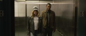 Starforce cadet Vers (Brie Larson, left) and S.H.I.E.L.D. agent Nick Fury (Samuel L. Jackson, right) embark on an incredible earthly adventure in the year 1995 in the spellbinding new superhero release, “Captain Marvel.” Photo by Film Frame © Marvel Studios, courtesy of Walt Disney Studios Motion Pictures USA.