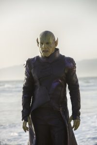 Vers comes away from the experience no more enlightened than when she went in, although the visit apparently triggers enhanced recall of her repressed memories, which obviously must be important to her, even if she can’t determine their significance or pinpoint the source of their origin. She attempts to set the issue aside as she prepares for her next military assignment, a rescue mission to retrieve a Kree spy captured by the Skrulls, a race of shape-shifters with whom her people are at war. However, while carrying out her duties, Vers is captured by the Skrulls’ commander, Talos (Ben Mendelsohn). But, as someone who is not one easily detained, the resourceful cadet makes her getaway when an opportunity presents itself, fleeing in an escape pod that sends her barreling toward a mysterious planet designated C-53, otherwise known as Earth.