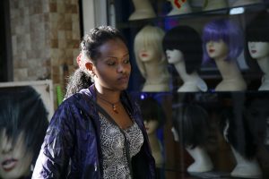 Rahil (Yordanos Shiferaw), a single mother and illegal alien from Ethiopia working in Lebanon, does what she can to make ends meet for a growing toddler in director Nadine Labaki’s ‟Capernaumˮ (“Chaosˮ). Photo by Fares Sokhon, courtesy of Sony Pictures Classics.