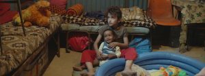 Runaway street kid Zain (Zain Al Rafeea, background) becomes an impromptu babysitter for Yonas (Boluwatife Treasure Bankole, foreground) when the toddler’s mother goes to work in ‟Capernaumˮ (“Chaosˮ). Photo by Christopher Aoun, courtesy of Sony Pictures Classics.