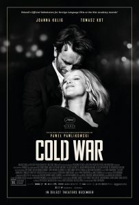 ‟Cold War” (“Zimna wojna”) (2018). Cast: Joanna Kulig, Tomasz Kot, Borys Szyc, Agata Kulesza, Cédric Kahn, Jeanne Balibar, Adam Woronowicz. Director: Pawel Pawlikowski. Screenplay: Pawel Pawlikowski, Janusz Glowacki and Piotr Barkowski. Story: Pawel Pawlikowski. Web site. Trailer.
