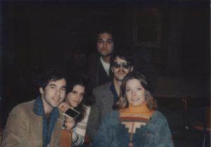 Comedienne Gilda Radner (second from left) appears with staff writer Tom Schiller (left) and fellow cast members John Belushi (center), Dan Aykroyd (second from right) and Jane Curtin (right) on the set of Saturday Night Live, as seen in the heartfelt new documentary, “Love, Gilda.” Photo courtesy of Magnolia Pictures.