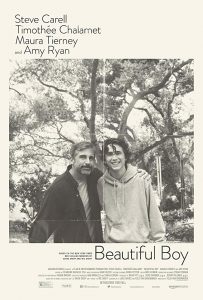 “Beautiful Boy” (2018). Cast: Steve Carell, Timothée Chalamet, Maura Tierney, Amy Ryan, Kaitlyn Dever, Timothy Hutton, Oakley Bull, Christian Convery, Andre Royo, Stefanie Scott, Kue Lawrence, Zachary Rifkin, Jack Dylan Grazer. Director: Felix Van Groeningen. Screenplay: Luke Davies and Felix Van Groeningen. Books: David Sheff, Beautiful Boy, and Nic Sheff, Tweak. Web site. Trailer.