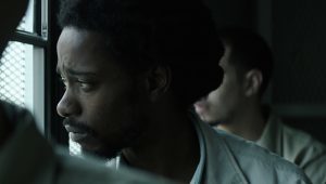 The long wait for justice weighs heavily on wrongly incarcerated inmate Colin Warner (Lakeith Stanfield) in the fact-based biographical drama, “Crown Heights.” Photo courtesy of IFC Films.