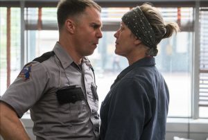 “Three Billboards Outside Ebbing, Missouri” (2017). Cast: Frances McDormand, Woody Harrelson, Sam Rockwell, Lucas Hedges, Peter Dinklage, John Hawkes, Zeljko Ivanek, Caleb Landry Jones, Abbie Cornish, Amanda Warren, Sandy Martin, Clarke Peters, Malaya Rivera Drew, Kerry Condon, Samara Weaving, Darrell Britt-Gibson, Kathryn Newton. Director: Martin McDonagh. Screenplay: Martin McDonagh. Web site. Trailer.