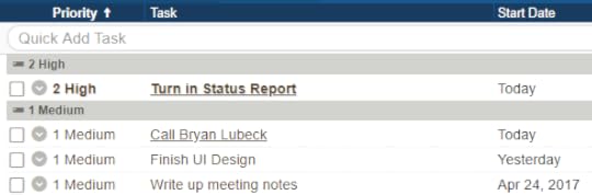 grouped by priority: high, normal, and low. And then tasks within each of those