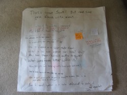 It took up three huge sheets of paper, and some folks drew pictures, diagrams and other creative ways to express their suggestions.