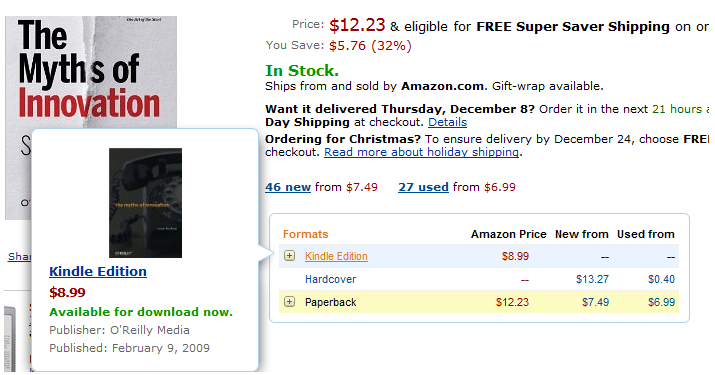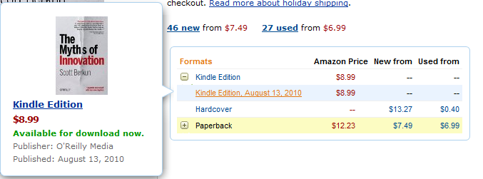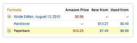 The scenario: while there is a separate URL For kindle editions of books, most often it seems people are sent to the print edition page, which shows the list of formats in a nice box in the middle of the page.