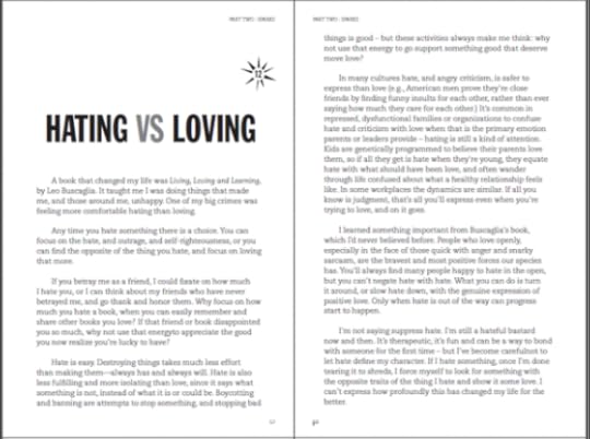 And as sneak peek, here's the interior design, which we're finishing up now. The book is divided into three parts: Gasoline, Sparks and Fire, each comprised of a different set of essays.