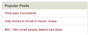 Noticed today, on the this blog, two polar opposite posts, One on Wikileaks Considered, the other on Smell-O-Vision, were the top two. Amazing. Thanks for reading my crazy, and oddly diverse, thoughts.