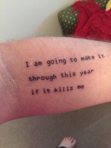 2016: it sucked and I got the depression2017: ‘die screaming, year of fuck’2018: I literally got a tattoo saying ‘I am going to make it through this year if it kills me’