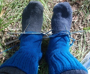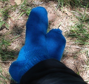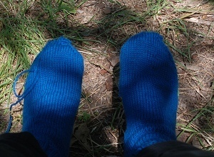 I wore the blue pair (second pair ever, also known as BlueOne) to the recording studio yesterday. They've been washed and are drying now. My feet were happy from 5:30 am, when I put them on, to midnight, when I took them off.