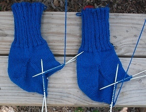 Gussets clearly visible between heel flap, bottom, and top of foot.