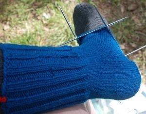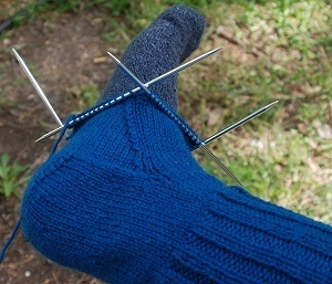 These socks do have a left and right--and when I can do grafting better, I'll like that a lot. My big toes don't like even gentle knit-sock-tension pushing them toward the center of my foot. This way I make the sock straight up the "inside" or medial side, with a curve on the outer or lateral side.