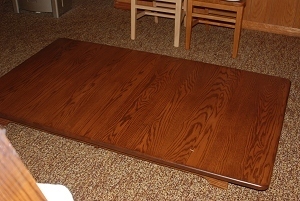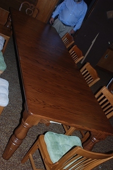 New table arrived after dark, and even with the top lights on, the flash couldn't quite deal with the length. This is with all leaves in.