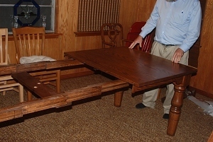 Before putting the leaves in--the crossbrace with the two holes showing here is for the fifth leg. The fifth leg can be removed when we want the table down to its basic size.