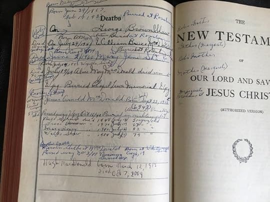 Speaking of Writing Things Down...When they were married, she gave my parents a large black family Bible. From the pristine shape of the cover and most of the pages, I'm pretty sure neither Mom or Dad ever read it. There were pages in the middle to record their Marriage, Births, and Deaths, and Mom did use it to keep track of family events there.