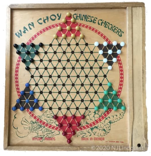 They had a wooden Chinese checker board with marbles. Before I was old enough to understand the actual games, we played a different game. We called it “Count the birdies.” He would pick up some of the marbles in both hands and shake them. Then I would try to guess how many marbles he was holding. When I guessed wrong, his eyes would sparkle and the gold fillings in his teeth would glint as his face broke out in a smile. When I guessed right, he would smile and open his hand to let me count them. Of course, I made him guess, too, trying to hold as many marbles as possible in my much smaller hands.