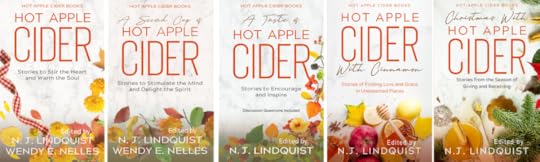 The new covers of the Hot Apple Cider books with the old ones below them:
