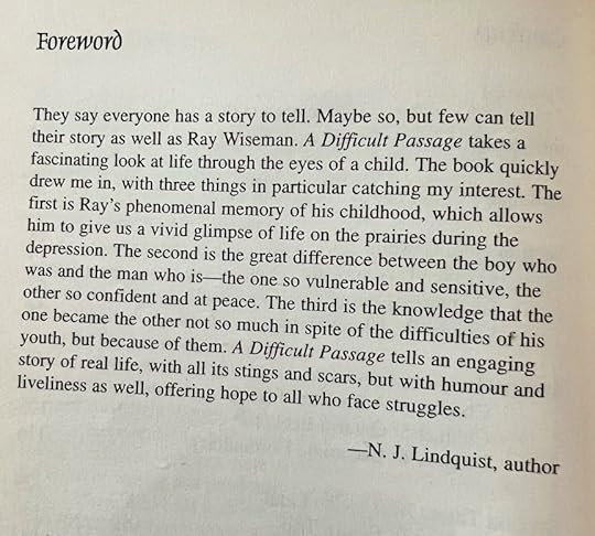I was honoured to write the foreward to Ray's memoir, A Difficult Passage: From prairie poverty to heights beyond. I still love the book. One of the disadvantages of indie publishing is not getting the attention your work might deserve.