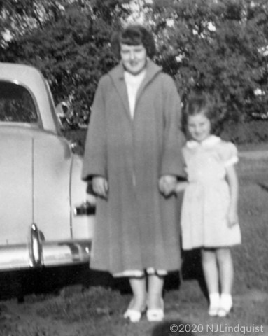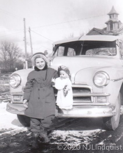 On the back of this picture, which was taken in the fall of 1953, Mom wrote that this car was a 1949 or 1950 Chevrolet Fleetline Deluxe 2-door.