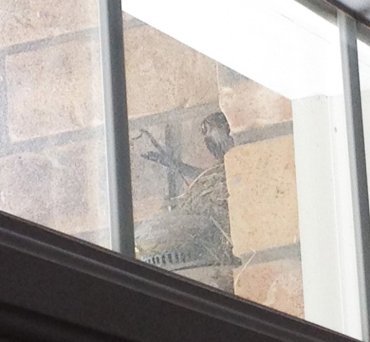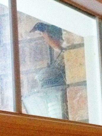 If you look closely at this picture, which I'll admit is very poor quality, you can see two adult robin heads right in the centre, against the corner of the wall of our entranceway.