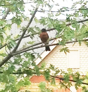 I was never able to get a decent picture but over the next days there were usually two robins in the tree out front, one bigger than the other. I assumed it was Papa Robin and one of the first babies.