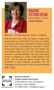 In January, I will be teaching a five day creative writing course in Auckland. I am very excited about this opportunity, and hope it will be an interesting and inspiring week for the students – and for me!