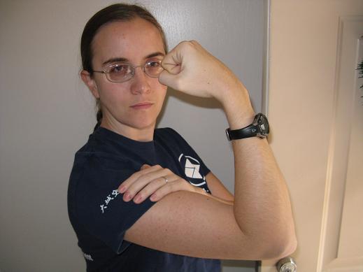 I wore my dojo t-shirt for the shot; it seemed fitting. (No bandanna, though.)