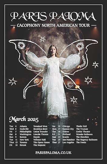 Cacophony, her critically-lauded 2024 debut album, landed on the Billboard Heatseekers Chart at #23 and received praise from The New York Times, Pitchfork, DIY, Dork, and many more. The album tells stories of grief, love and trauma through the lens of Greek mythology, gothic literature, and patriarchal oppression. Listen to Cacophony here: https://parispaloma.ffm.to/cacophony