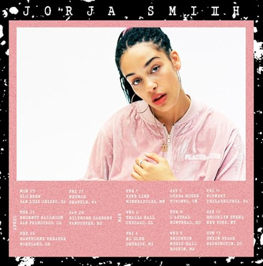 JORJA SMITH TOUR DATES4/23/18 San Luis Obispo, CA @ SLO Brew4/24/18 San Francisco, CA @ Regency Ballroom4/26/18 Portland, OR @ Hawthorne Theatre4/27/18 Seattle, WA @ Neumos4/28/18 Vancouver, BC @ Biltmore Caberet5/1/18 Minneapolis, MN @ Fine Line5/2/18 Chicago, IL @ Thalia Hall5/4/18 Detroit, MI @ El Club5/5/18 Toronto, ON @ Opera House5/8/18 Montreal, QC @ L'Astral5/9/18 Boston, MA @ Brighton Music Hall5/11/18 Philadelphia, PA @ Foundry5/12/18 New York, NY @ Brooklyn Steel5/13/18 Washington, DC @ Union Stage