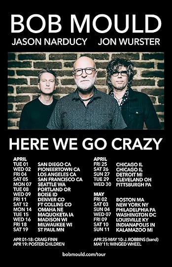 Mould and band (drummer Jon Wurster and bassist Jason Narducy) will mark the arrival of Here We Go Crazy with US headline dates getting underway April 1 at San Diego, CA’s Music Box and then traveling through mid-May. Highlights include stops at venues including Pioneertown, CA’s Pappy & Harriet’s (April 2), San Francisco, CA’s The Fillmore (April 5), Seattle, WA’s Neptune Theatre (April 7), St. Paul, MN’s Palace Theatre (April 19), Chicago, IL’s Metro (April 25-26), Boston, MA Paradise Rock Club (May 2), New York City’s Le Poisson Rouge (May 3), and Washington, DC’s Black Cat (May 7). For complete details and ticket information, please visit https://bobmould.com/tour/.