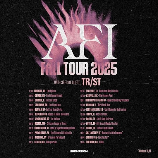 This fall, AFI will embark on their headline North American tour with special guests TR/ST to celebrate the release of Silver Bleeds The Black Sun... The 24-date run will begin on September 30th in Madison, WI with stops in Chicago, Brooklyn, Boston, Atlanta, Dallas, and Denver, before wrapping November 5th in San Diego, CA. The tour marks AFI’s first full-scale outing since their celebrated 2021 release Bodies, and will offer fans the chance to experience songs from across their extensive catalog, delivered with the band’s signature electrifying performance. Tickets available HERE.