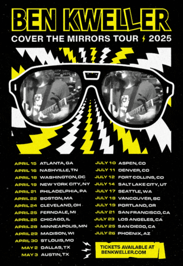 Ben Kweller has been an open book throughout his illustrious career. His songs hold a nostalgic quality that takes you to a time and a place, happy or sad. Cover The Mirrors now sees Kweller walking through the fire of heartbreaking grief with intention and purpose. Recorded October 2024 at NoiseCo Studio in Dripping Springs, TX with tour mates Chris Mintz-Plasse (bass) and Ryan Dean (drums), the 12-song collection features guest performances by an array of friends and fellow musicians, including Waxahatchee (“Dollar Store”), MJ Lenderman (“Oh Dorian”), The Flaming Lips (“Killer Bee”), and Jason Schwartzman’s highly acclaimed mid-aughts musical project Coconut Records (“Depression”). Despite the profound heartache and sadness that has filled the years since Dorian’s passing, Kweller’s open-eyed honesty about grief and loss has been an inspiration to people around the world. Now, with Cover The Mirrors, Ben Kweller devotes that deep well of emotions to his music, offering a chance to witness one of the great singer/songwriters at their creative peak.