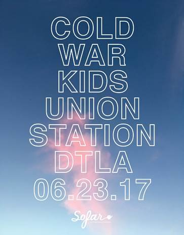 COLD WAR KIDS ANNOUNCE FREE HEADLINE SHOW IN PARTNERSHIP WITH SOFAR SOUNDS AND METRO ART PRESENTS AT UNION STATION IN LOS ANGELES