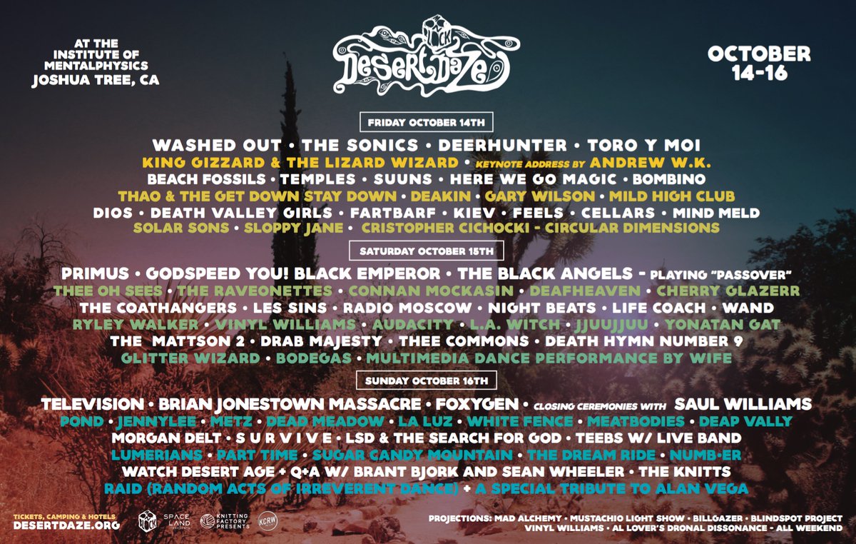 Oct 16 - Desert Daze - Joshua Tree, CAOct 17 - Teragram Ballroom - Los Angeles, CAOct 18 - The Independent - San Francisco, CAOct 21 - Sala Corona - Mexico City, MEXICOOct 22- Coordenada Festival- Guadalajara MEXICOOct 24 - Rock & Roll Hotel - Washington DCOct 25 - Underground Arts - Philadelphia, PAOct 26 - Music Hall of Williamsburg - Brooklyn, NYOct 28 - Great Scott - Boston, MANov 03 - Bizarro - Lima, PeruNov 05 - Blondie - Santiago, ChileNov 06 - Niceto Club - Buenos Aires, Argentina