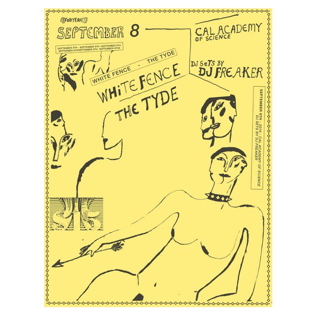 Flyer art by Tim Presley for next week's White Fence/Tyde show at @calacademy Golden Gate Park 9/8 @folkYEAHevents !