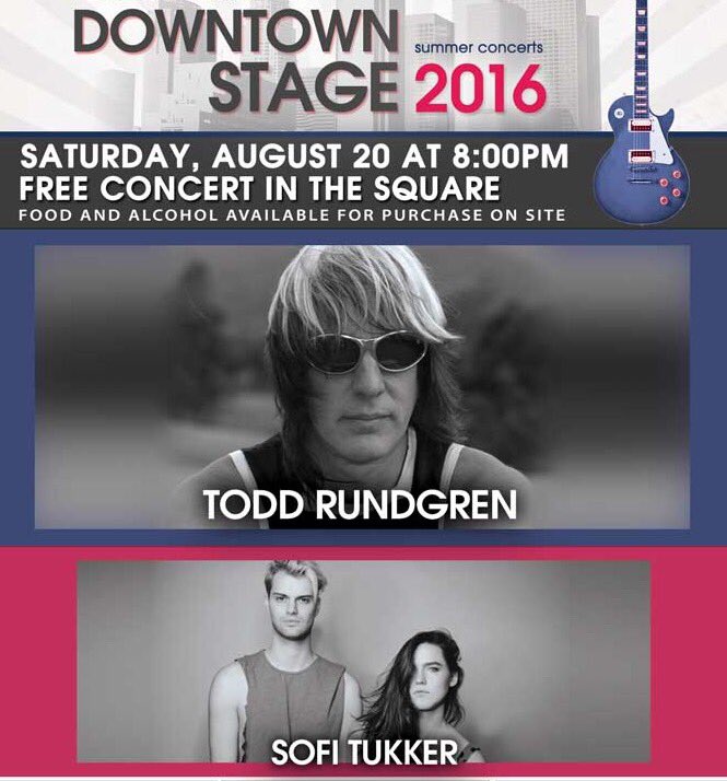 Last show of a great season. Please join us for Todd Rundgren & Sofi Tukker. 5 bars, food trucks & ice cream.