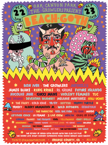 THE GROWLERS ANNOUNCE 5TH ANNUAL BEACH GOTH FESTIVALOCTOBER 22 & 23FEATURING THE GROWLERS, BON IVER, JUSTICE, TLC, JAMES BLAKE, KING KRULE, GUCCI MANE, DEVENDRA BANHART, 2 LIVE CREW, VIOLENT FEMMES, KALI UCHIS & MOREANNOUNCE NEW RECORD TO BE RELEASED THIS FALL ON JULIAN CASABLANCAS' CULT RECORDS