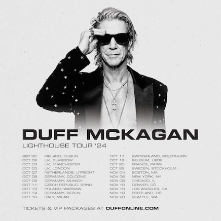 McKagan’s first solo headline run in half a decade, Lighthouse Tour ‘24 celebrates last year’s release of his critically acclaimed third solo album, LIGHTHOUSE, available everywhere now. Hailed by Paste as “an emotional, personal and spiritual reckoning...(McKagan’s) most important rock project yet,” the album sees Duff McKagan baring more of his artistic spirit than ever before, fusing acoustic elements with hard-edged rock ‘n’ roll to land at the sweet spot between soul-searching reflection and pure energy. LIGHTHOUSE was met by critical applause from such international outlets as Rolling Stone, Kerrang!, Revolver, and American Songwriter for such singles as LIGHTHOUSE, I SAW GOD ON 10TH STREET, and LONGFEATHER, the latter hailed by Revolver as “folky, elegiac” and joined by an official music video streaming now at YouTube. McKagan later performed LONGFEATHER with an exclusive appearance on ABC’s Jimmy Kimmel Live!, streaming HERE.