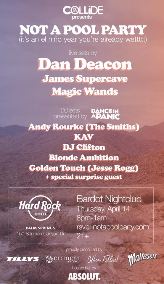 James Supercave is excited to hit the road this spring supporting Wild Belle. The upcoming tour will make stops in Brooklyn, Philadelphia, Atlanta, Austin and more. The band also just announced aBrooklyn headlining show at Our Wicked Lady as a part of Indie Shuffle's Monthly Showcase as well as a performance at Collide's Not A Pool Party Coachella kick off event. Not A Pool Party will take place on April 14 at the Bardot Nightclub at the Hard Rock Hotel in Palm Springs and will also include sets by Dan Deacon and Magic Wands. All upcoming shows are listed below.