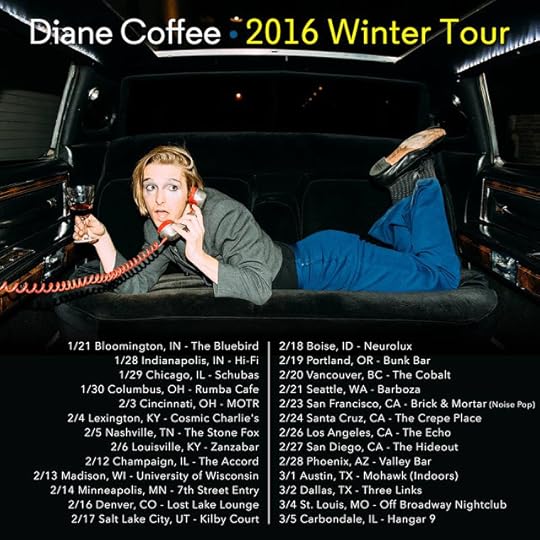 # = Headlining* = w/ Dr. Dog1/24: Columbus, OH @ Double Happiness #1/25: St. Louis, MO @ Off Broadway # 1/26: Norman, OK @ The Opolis #1/29: Santa Ana, CA @ The Observatory *1/30: Oakland, CA @ Fox Theater *1/31: Santa Cruz, CA @ The Catalyst *2/2: Reno, NV @ Cargo @ Whitney Peak Hotel *2/3: Bend, OR @ Midtown Ballroom *2/4: Portland, OR @ Crystal Ballroom *2/5: Seattle, WA @ Neptune *2/6: Vancouver, BC @ Venue *2/8: Spokane, WA @ Knitting Factory *2/9: Boise, ID @ Neurolux #2/11: Denver, CO @ Larimer Lounge #2/12: Colorado Springs, CO @ The Black Sheep #2/13: Boulder, CO @ Boulder Theater *2/16: Tempe, AZ @ Marquee Theater *2/17: Flagstaff, AZ @ The Orpheum Theater *2/19: Los Angeles, CA @ The Wiltern *2/20: San Diego, CA @ The Observatory North Park *2/23: Kansas City, MO @ The Riot Room #2/24: Bloomington, IN @ The Bishop #2/25: Cleveland, OH @ Grog Shop #3/17: Philadelphia, PA @ The Fillmore * 3/19: New York, NY @ Terminal 5 *5/13-15: Atlanta, GA @ Shaky Knees Festival5/27-30: George, WA @ Sasquatch! Music Festival