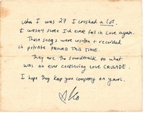 Crush Songs will first be available as a limited, special vinyl edition incorporating Karen’s own personal drawings, handwritten lyrics and more (see the album cover, right, and a note from Karen, below). In addition to this limited edition, the album will be released on standard vinyl, CD and digitally from September 9.“When I was 27 I crushed a lot,” says Karen of the new record. “I wasn’t sure I’d ever fall in love again. These songs were written and recorded in private around this time. They are the soundtrack to what was an ever continuing love crusade. I hope they keep you company on yours.”