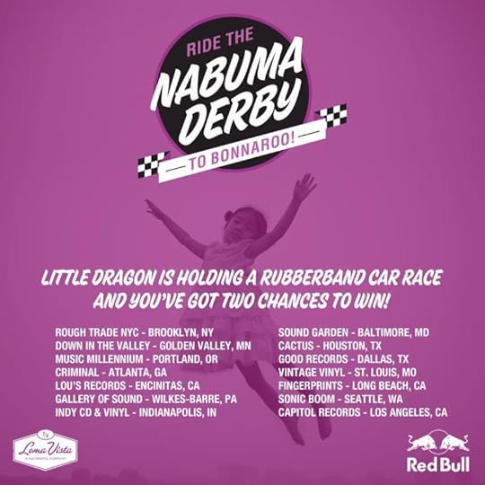 photo by: Marco van Rijt Little Dragon and Red Bull are proud to announce the Nabuma Derby, a national racing series hosted in record stores starting May 11th, just as Nabuma Rubberband hits the shelves. Participating independent record stores nationwide will hold racing derbies featuring rubberband-powered racers built and designed by fans. For those outside driving range of these derbies, there will also be a national contest where fans can create a Nabuma Derby racer and upload a photo to Instagram and hashtag #nabumaderby. The national contest will be solely based on the creative design of the car. Little Dragon will hand-pick a winner who will get 2 round trip flights and 2 tickets to Bonnaroo.