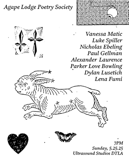 AGAPE LODGE POETRY SOCIETY this sunday May 25th 2025