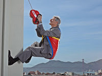While working at 100 State Street in Boston, I once witnessed an emergency involving a window washer. One of the two cables holding up the platform that travels up and down the side of the building, allowing the window washers to do their job, snapped. The platform then hung vertically, held by a single cable, with the window washer barely holding on. The various fashion victims who inhabited that floor of the tower (it was in an advertising agency) crowded next to the window and signaled their shock with theatrical gasps and pantomimes of horror. The fire department was called, and the following routine played itself out. First, the entire building was placed under lock-down: nobody could enter or exit the building. Second, a security perimeter was established around it; traffic was stopped and cars parked within the perimeter were towed away. Third, firemen used axes to smash the plate glass window next to the window washer from inside, sending a cascade of glass shards tumbling down to the now empty street below. It took a surprising amount of force to bash through the glass. It sounded like gunfire when it finally broke away in large, irregular-shaped pieces, which, after smashing into the pavement below (I went down to check) looked like coarse sand. Finally, two more firemen standing inside the building grabbed the window washer and pulled him in.