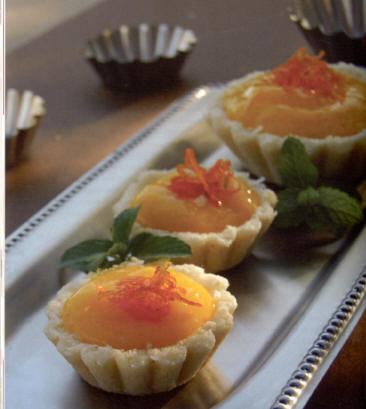 To serve, scoop 1 tablespoon mango sorbet into each tartlet shell and serve immediately.