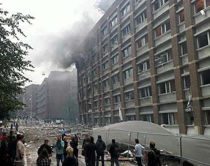 The BBC reports that "Norwegian police confirm that a bomb caused the explosion outside the prime minister's office – and there are deaths and injuries."
